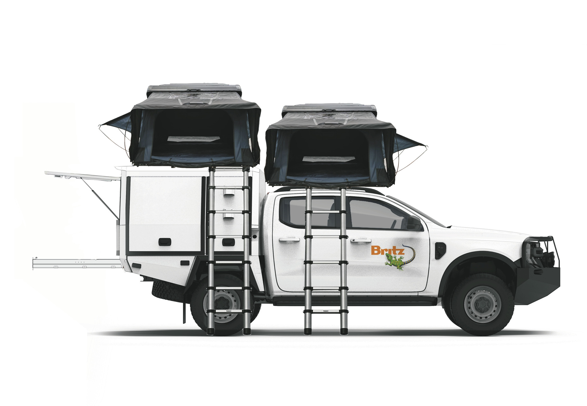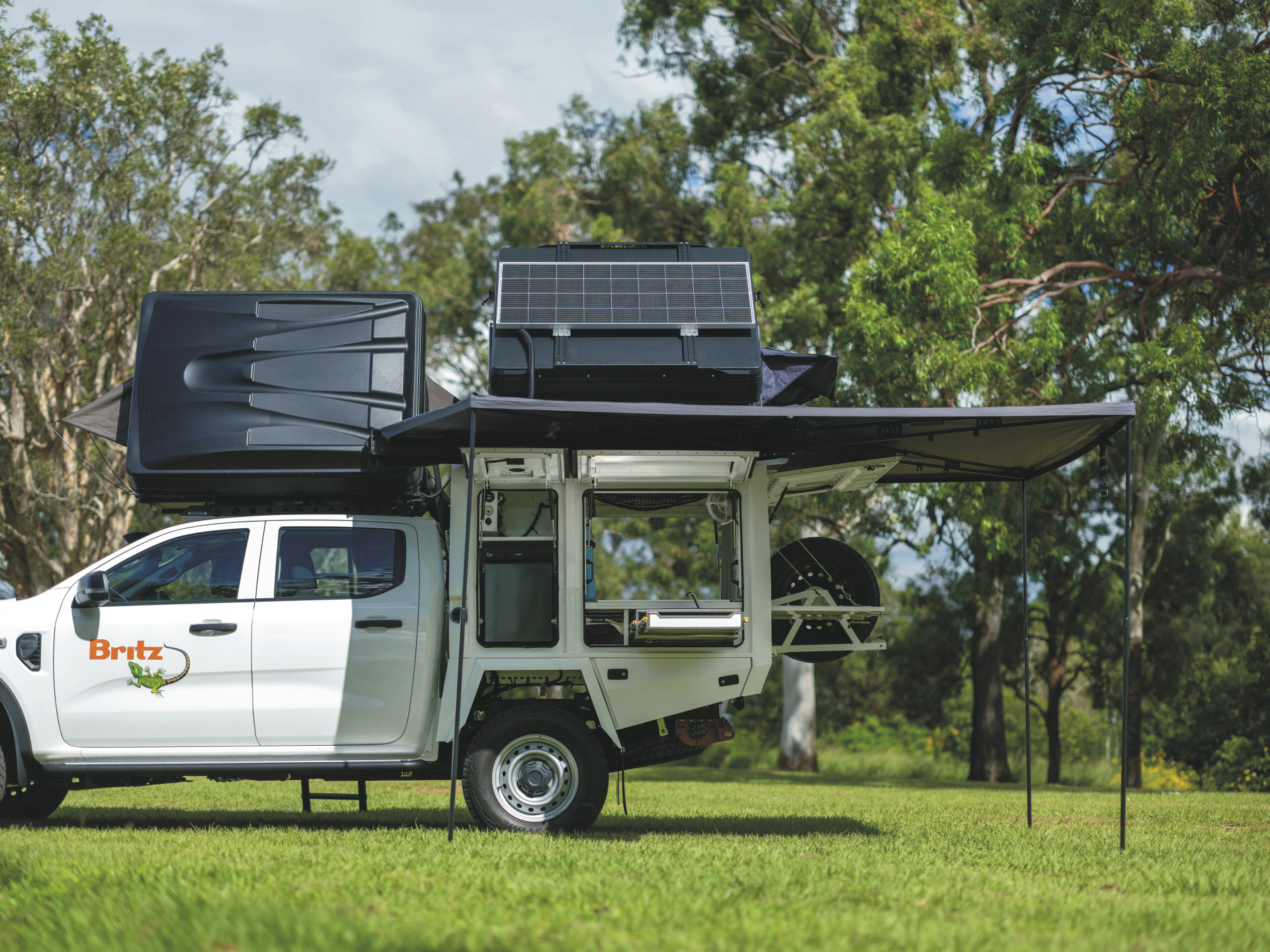 Der auf einem Pick-up mit Doppelkabine basierende Warrior ist das neueste Mitglied der Britz 4WD-Flotte. Der Camper verfügt über zwei Hartschalen-Dachzelte und ist ganzjährig verfügbar. Ein zuverlässiger Outdoor-Begleiter mit viel Stauraum.