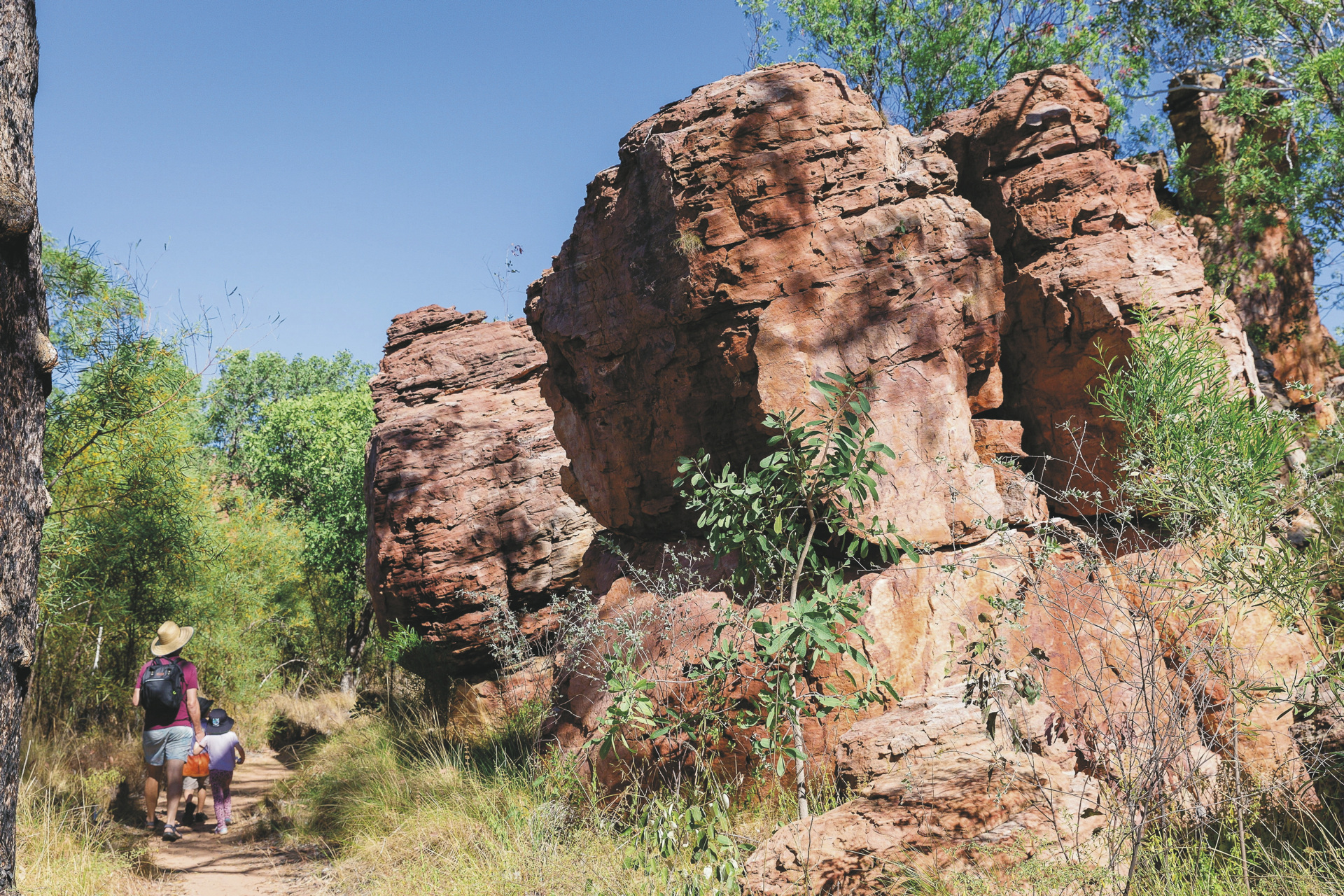 Nitmiluk - Katherine Gorge (ca. 65 km).Der bekannte Nitmiluk (Katherine Gorge) Nationalpark liegt nur ca. 30 Autominuten entfernt. Ein Schluchtensystem bestehend aus 13 Schluchten lädt ein, zu Land, zu Wasser und aus der Luft erkundet zu werden. Es gibt fantastische Wandermöglichkeiten unterschiedlichen Anspruchs mit atemberaubenden Ausblicken hinab in die Schlucht. Beliebt sind Bootsfahrten (optional), allen voran die zum Sonnenuntergang mit Abendessen an Bord. Aber auch aus der Luft per Helikopter bieten sich unvergessliche Ausblicke.