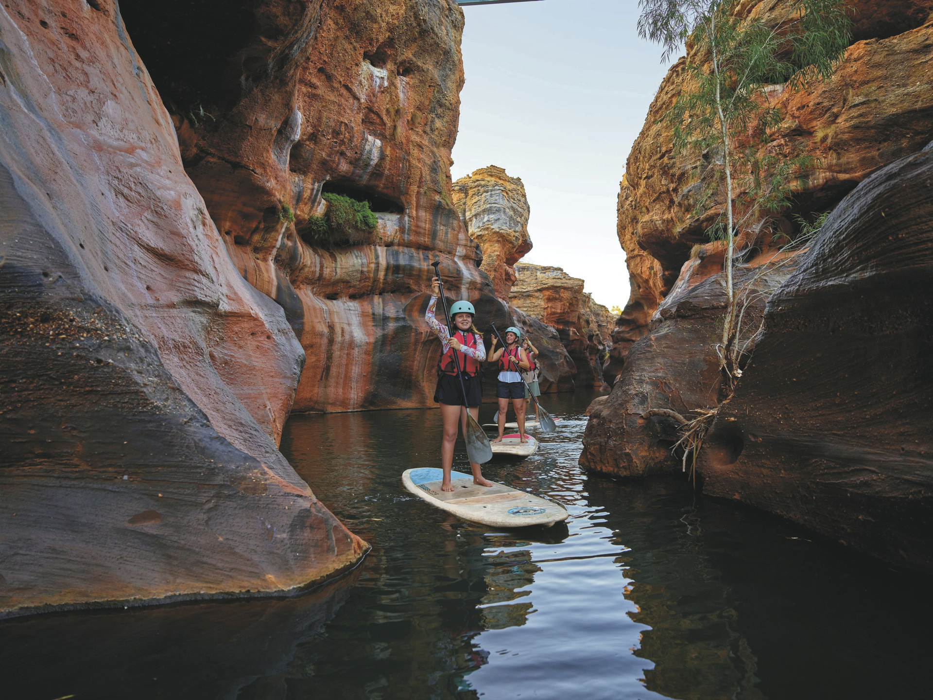 Cobbold Gorge (F/A).Ein ca. 3-stündiger Ausflug in die Cobbold Gorge entführt Sie in die Urzeit dieses Kontinents. Sie sehen bizarre Felsformationen, enge Schluchten und immer wieder spektakuläre neue Aussichten in dieser Millionen Jahre alten Schlucht. Optional können Sie mit Kajaks zwischen den roten Klippen paddeln oder die Region aus einer neuen Perspektive beim Stand-Up-Paddling erleben.