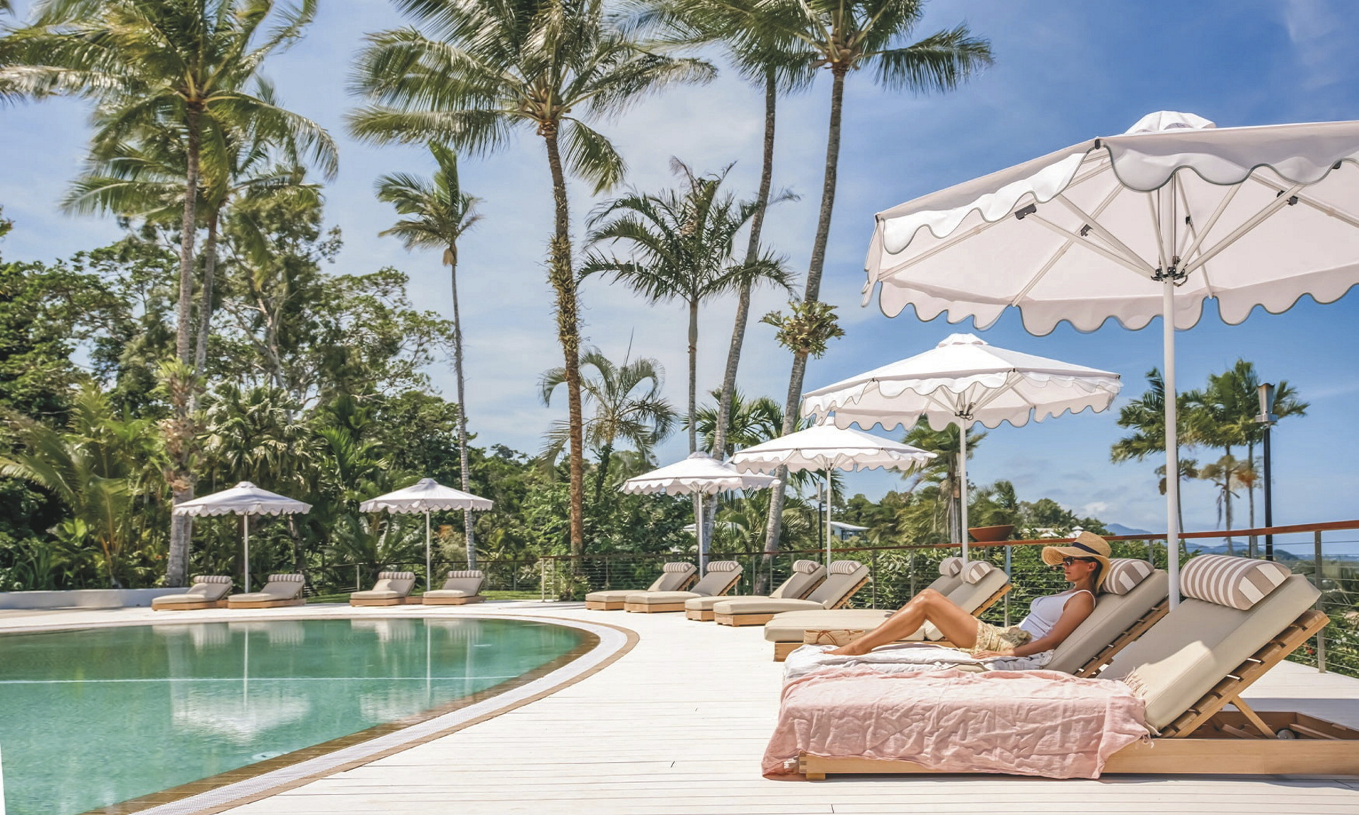 Boutique-Resort eingebettet in tropischen Regenwald mit Panoramablick über das Korallenmeer und die vorgelagerten Inseln von Mission Beach. Ideal für eine entspannte Auszeit in stilvoller Umgebung.